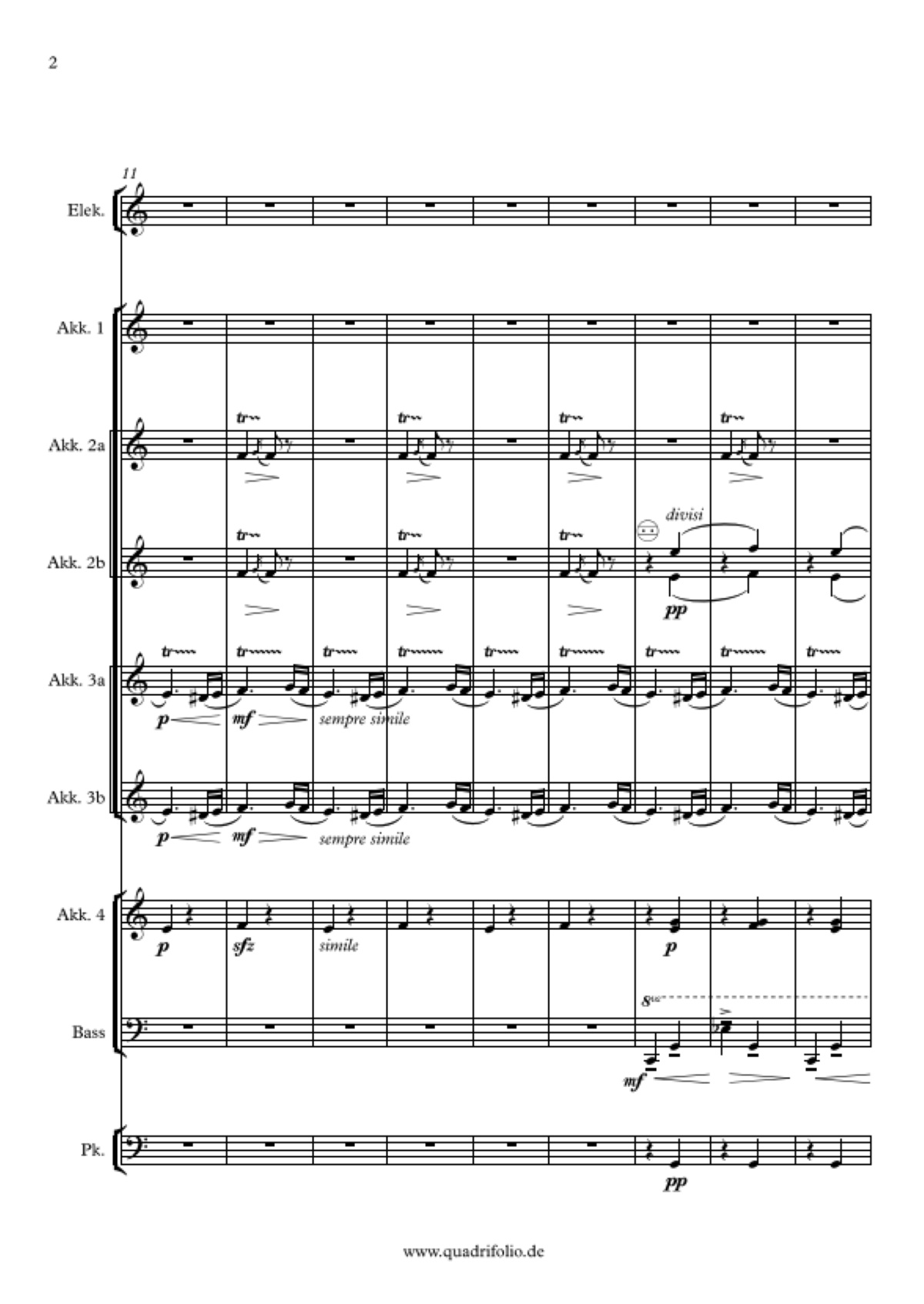 Besetzung: Akkordeon 1, 2a, b, 3a, b, 4, Bass, Elektronium, Pauken