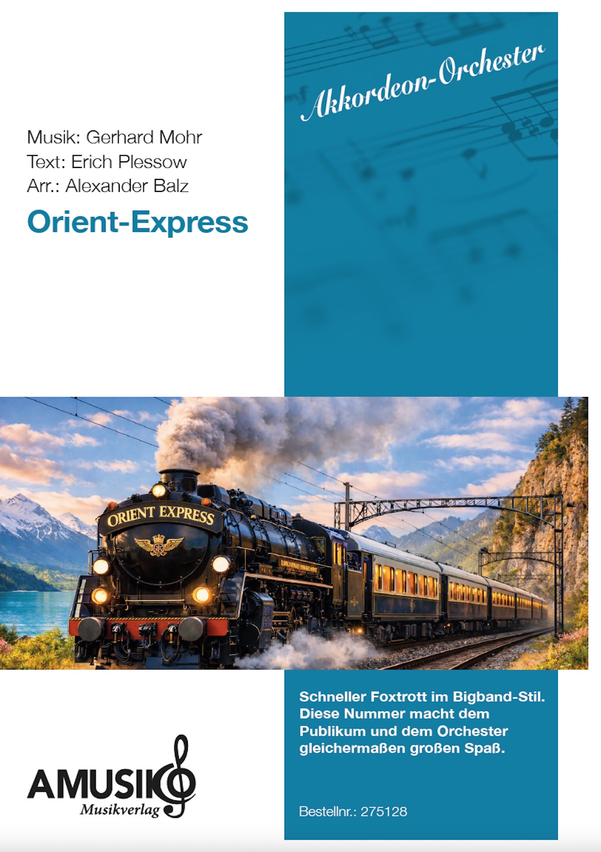 Orient-Express ist Gerhard Mohrs bis heute bekannteste Komposition. Alexander Balz hat den schnellen Foxtrott im Bigband-Stil nun für Akkordeonorchester arrangiert. Eine Nummer, die Publikum und Orchester gleichermaßen großen Spaß macht!