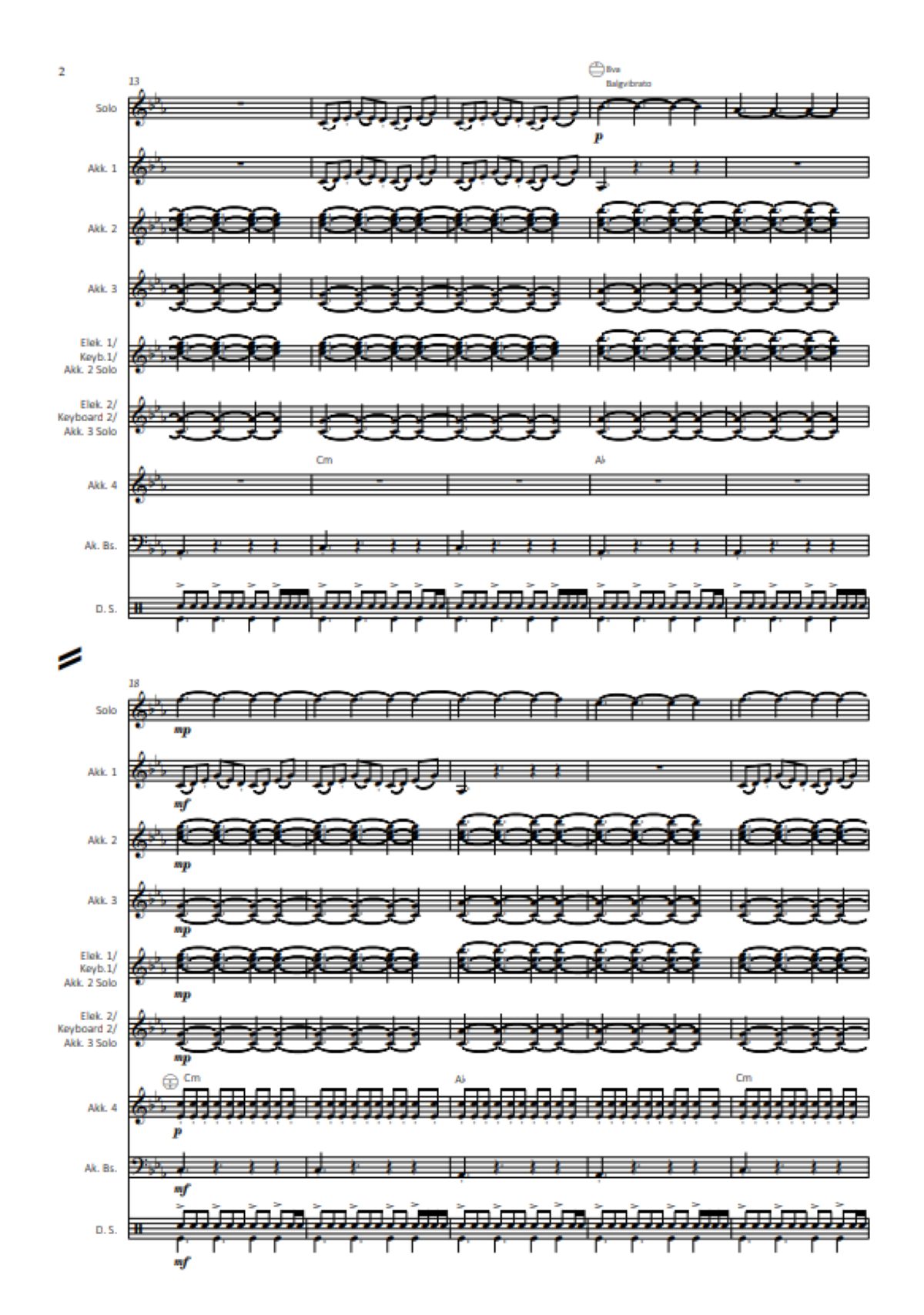 Besetzung: Akkordeon-Solo 1, Akkordeon 1-4, Bass, Elektronium/Keyboard 1/Akkordeon-Solo 2, Elektronium/Keyboard 2/Akkordeon-Solo 3, Schlagzeug