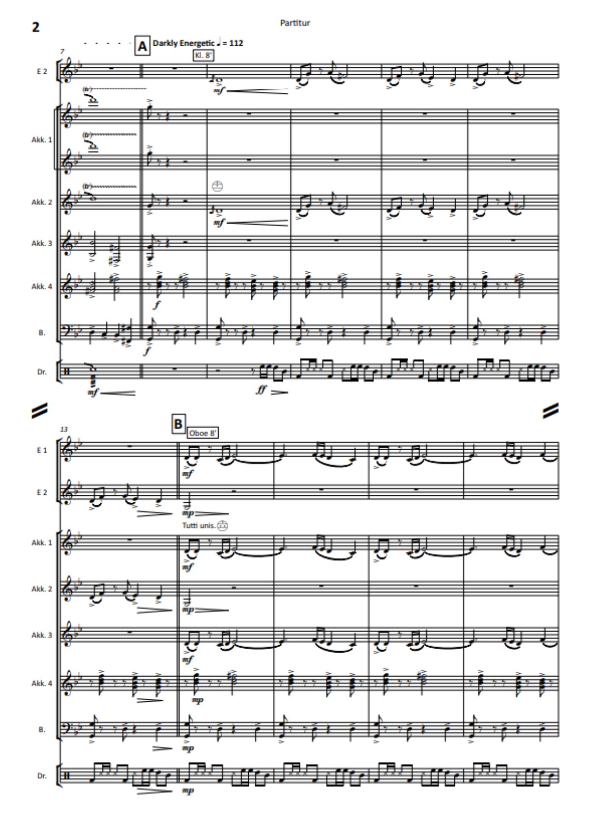 Besetzung: Akkordeon 1-4, Bass, Elektronium 1, 2 (ad lib.), Schlagzeug