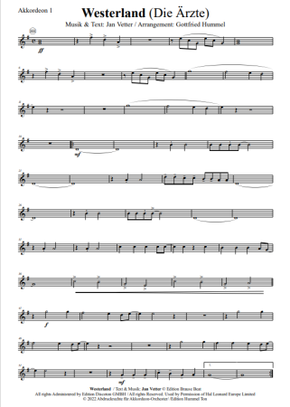 Besetzung: Akkordeon 1, 2, 3, 4/Gitarre/Begleitung (mit Chords), Easy, Bass, Keyboard, Drums, Pauke