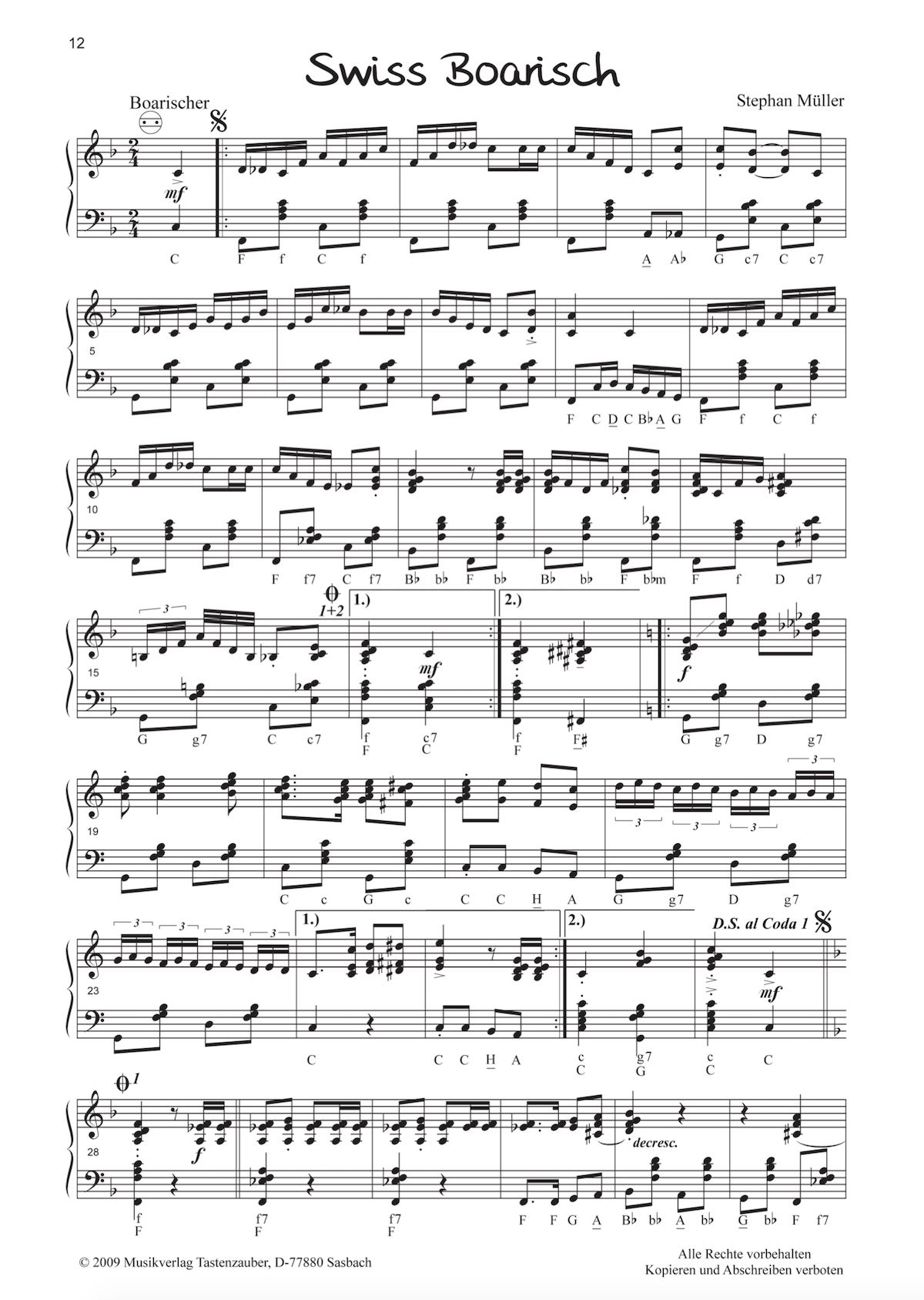 das sind die Brüder Philipp und Stephan Müller. Ihre Stilrichtung bezeichnen sie selbst als "Tanzjazz". In diesem Notenalbum findet sich ein kleiner Querschnitt ihres Programms. Der bunte Mix aus Musette, Dixieland, Polka und Boarisch - gemixt mit einem Schuss Jazz und Swing - versprüht großen Spielspaß. Die Titel können Akkordeon Solo gespielt werden oder im Duett. Eine Broschüre mit 2. Stimme für C- und Bb-Instrumente liegt dem Heft bei.