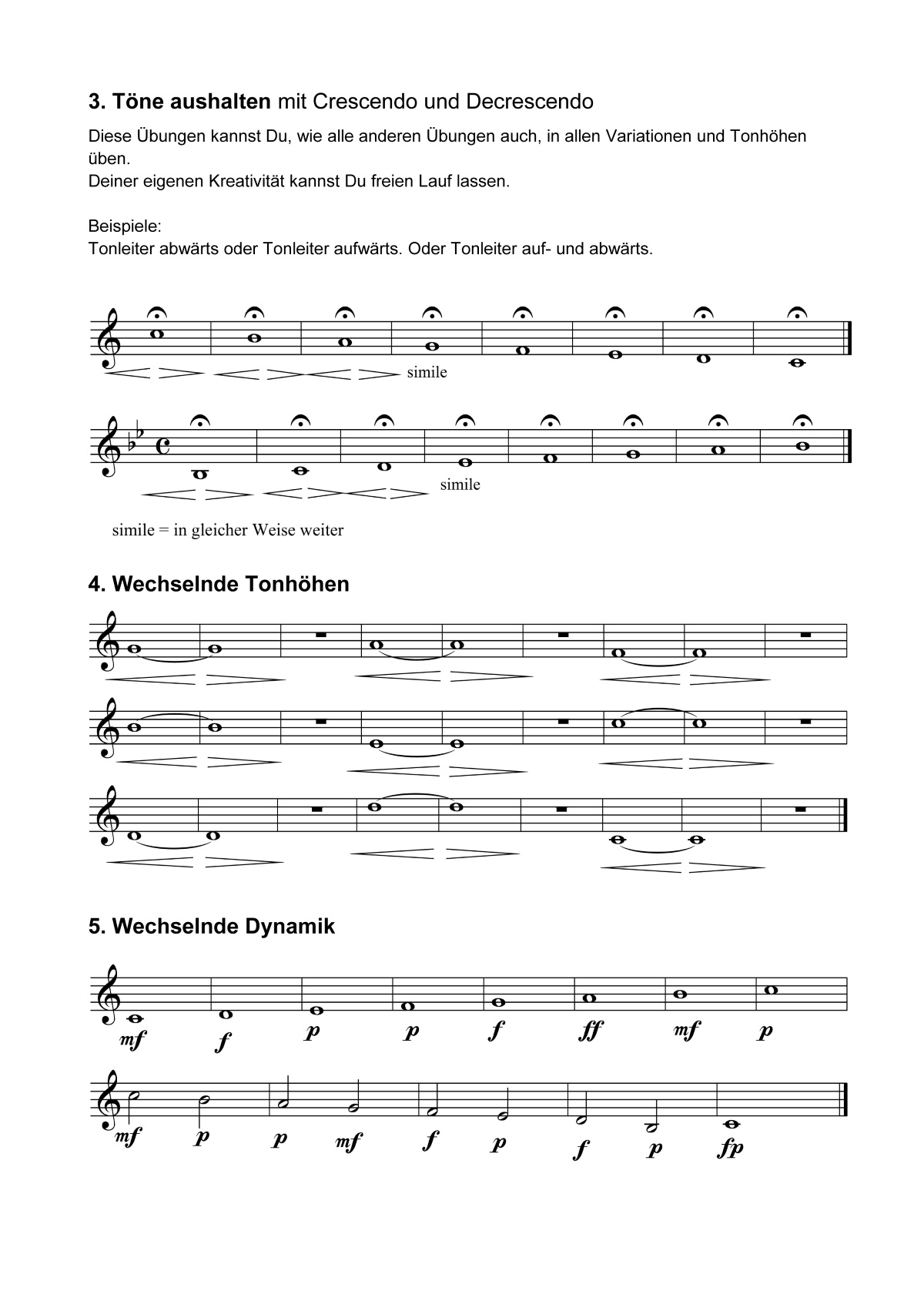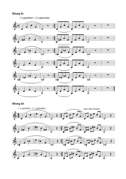 Nach der Vorstellung der Artikulationsarten Legato, Staccato, Tenuto und Portato folgt ein wichtiges Kapitel über Einblas- und Ansatzübungen. Aus diesen Musterübungen kann sich jeder ein möglichst abwechslungsreiches Einspiel- und Ansatz-Trainingsprogramm zusammenstellen.